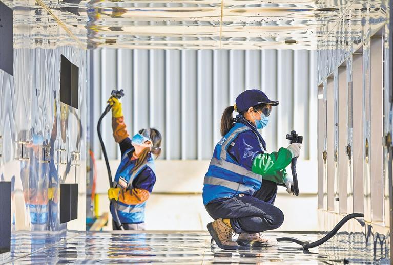 ◀1月6日,江西奉新县江西嘉拓智能设备有限公司,工人在加工涂布机烘箱。