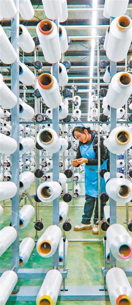 ▶1月7日,工人在贵州毕节高新技术产业开发区一纺纱企业生产车间操作。