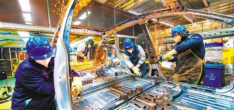 ▲1月3日,浙江省金华市新能源汽车小镇某汽车生产工厂,工人在作业。