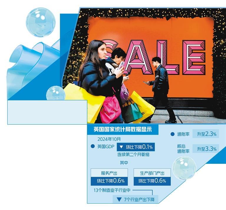 英国国家统计局近期公布数据显示,继2024年9月英国国内生产总值(GDP)环比下降0.9%后,2024年10月英国GDP再度环比下降0.1%,这是英国经济连续第二个月萎缩。英国国家统计局部门主管麦基翁表示,10月英国服务业整体零增长,包括制造业在内的生产部门以及建筑业均出现负增长。英国财政大臣里夫斯也在声明中表示对10月的经济表现失望,但肯定秋季预算及产业政策将实现长期经济增长。保守党则认为,工党政府上台后采取的举措有失水准,从而导致英国经济增长面临巨大压力和不确定性。