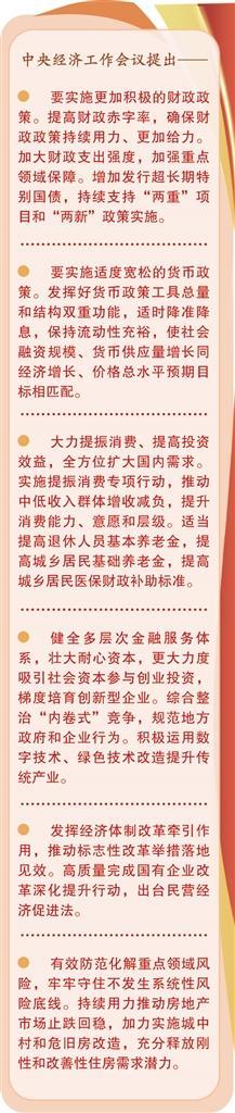 黄汉权:我觉得不能等同于或者看成是“N万亿”经济刺激政策的再现。适度宽松的货币政策,从总量和结构上都提出了明确要求。在总量上,要求创造良好的流动性环境,使整个社会的融资规模、货币发行量和经济增长以及物价水平的预期目标相匹配。在结构上,强调通过降准降息来降低整个社会的融资成本,为企业和居民提供更加合理的资金供给。还强调要优化金融工具,推动资金更多地向实体经济流动,特别是向新质生产力、产业升级、新型城镇化以及民生改善等领域汇聚,从而实现补短板、强弱项、增后劲。