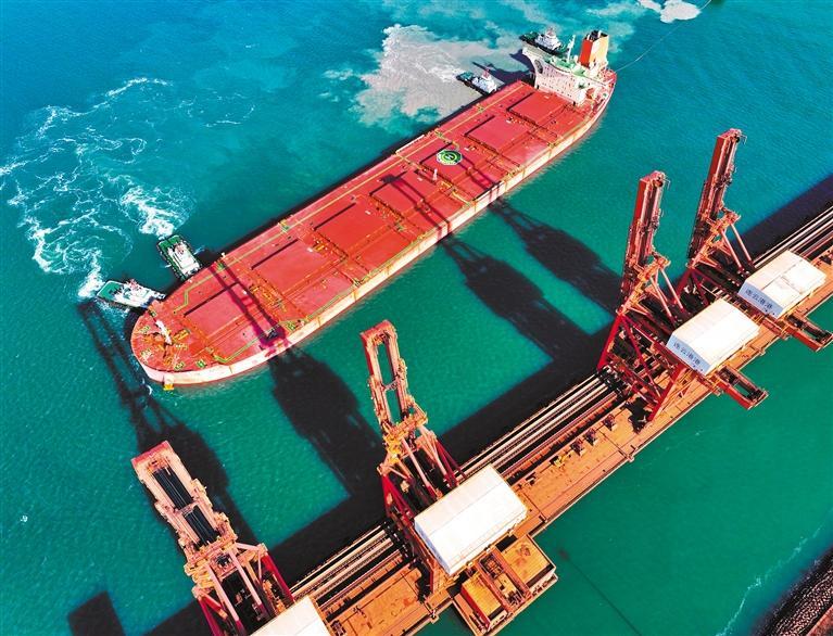 ▲1月2日,船舶在河北沧州黄骅港煤炭码头装运煤炭。