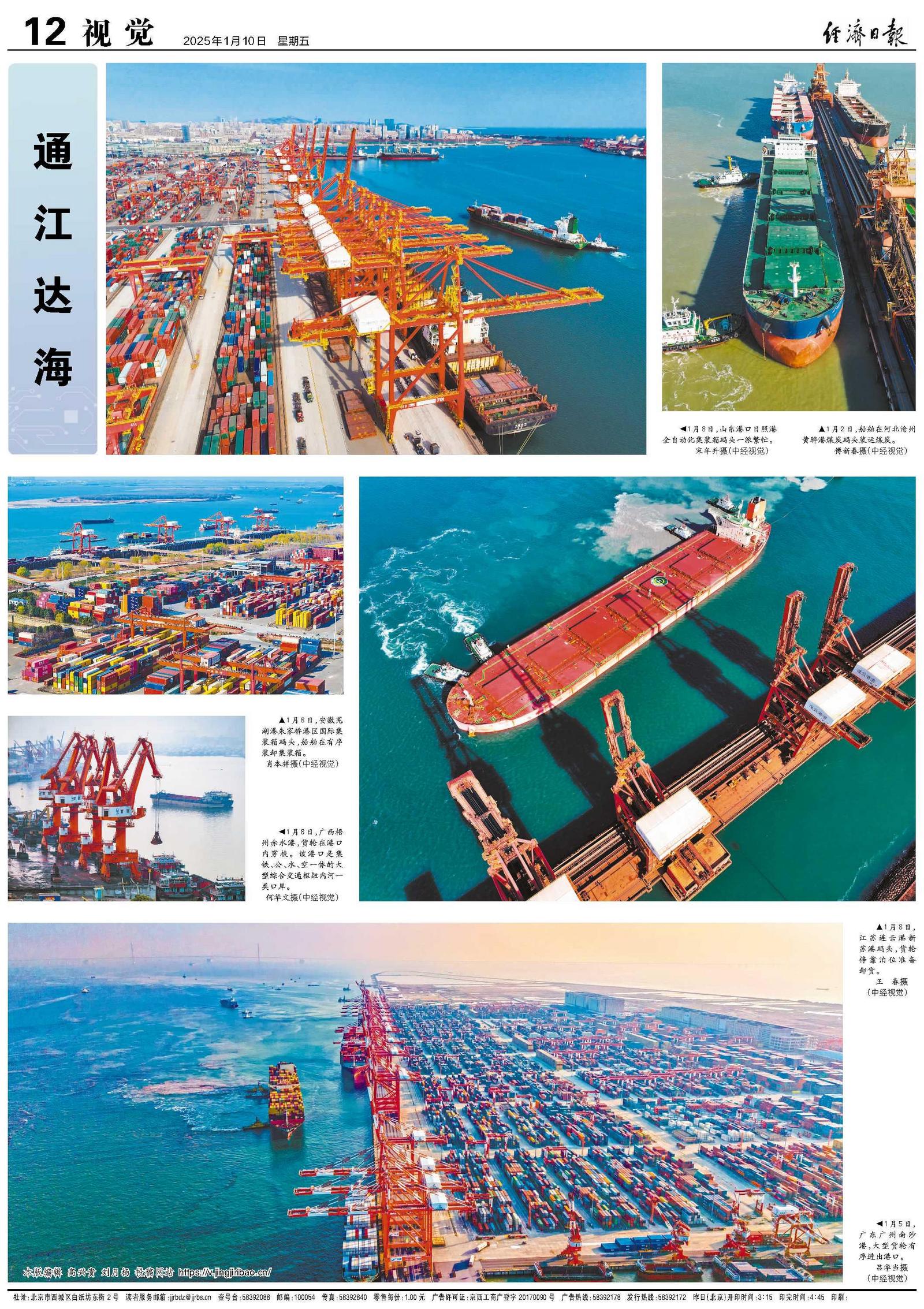 ◀1月5日,广东广州南沙港,大型货轮有序进出港口。