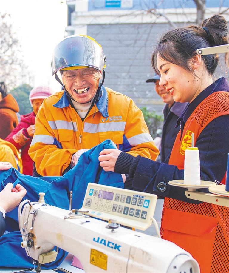 ▼1月5日,江苏省宿迁市黄河街道向阳社区隆源水晶城小区,志愿者开展便民服务。
