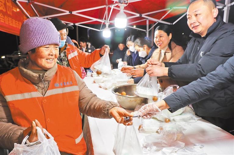▼1月7日,河南省许昌市,环卫工人在领取腊八粥、包子和鸡蛋。