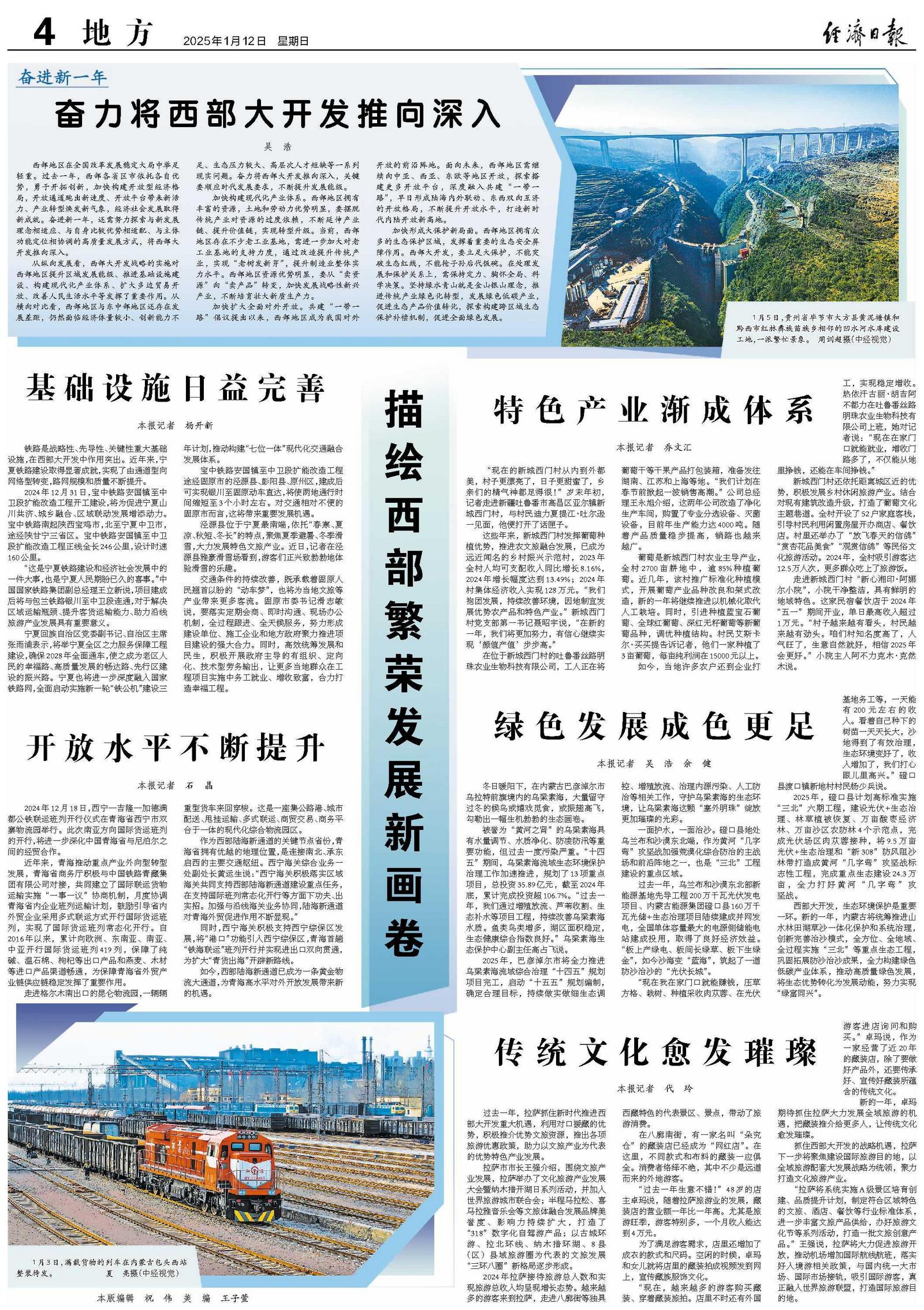 西部大开发,生态环境保护是重要一环。新的一年,内蒙古将统筹推进山水林田湖草沙一体化保护和系统治理,创新完善治沙模式,全方位、全地域、全过程实施“三北”等重点生态工程,巩固拓展防沙治沙成果,全力构建绿色低碳产业体系,推动高质量绿色发展,将生态优势转化为发展动能,努力实现“绿富同兴”。