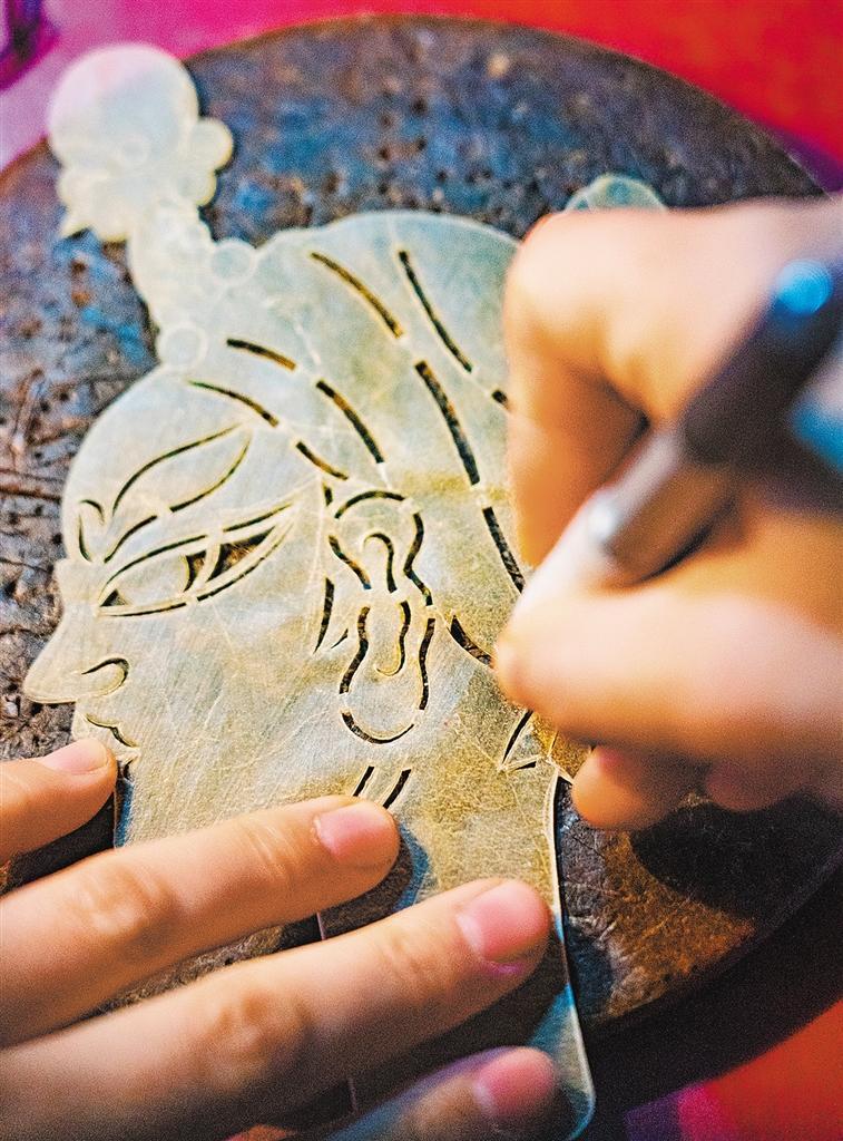 北京皮影戏在造型设计、雕刻工艺、唱腔表演等方面呈现了中国传统文化的综合之美,且具有浓厚的京味特色。其制作工序包括制皮、画稿、雕刻、敷彩、熨平等流程,其中尤以雕刻工艺最显匠心。