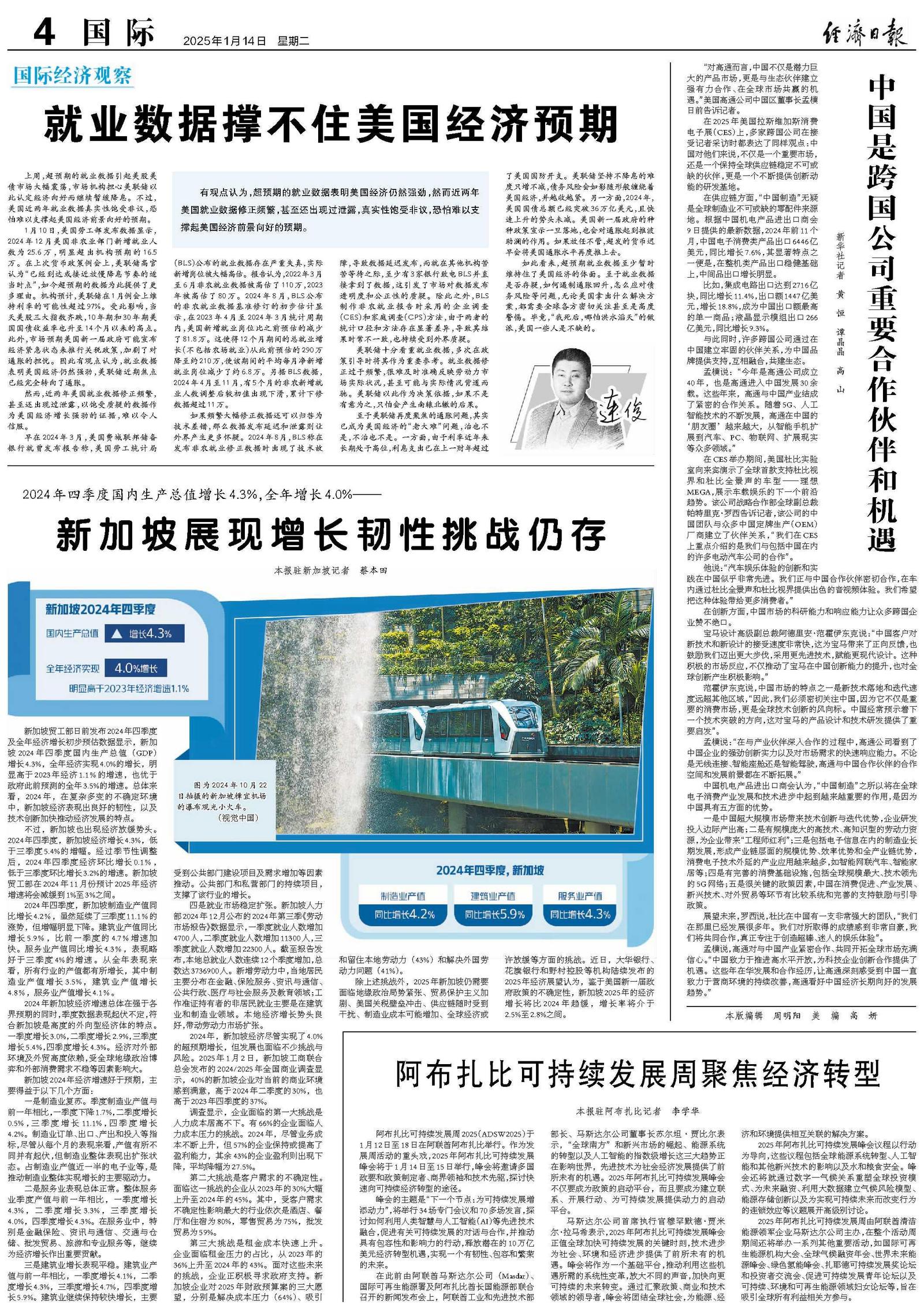 不过,新加坡也出现经济放缓势头。2024年四季度,新加坡经济增长4.3%,低于三季度5.4%的增幅。经过季节性调整后,2024年四季度经济环比增长0.1%,低于三季度环比增长3.2%的增速。新加坡贸工部在2024年11月份预计2025年经济增速将会减缓到1%至3%之间。