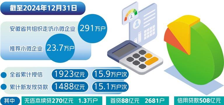 当前,“支持小微企业融资协调工作机制”正在加速推进。记者获悉,截至2024年12月31日,安徽省共组织走访小微企业291万户(申报33.5万户),推荐小微企业23.7万户;全省累计授信1923亿元、15.9万户次;累计新发放贷款1488亿元、15.1万户次,其中,无还本续贷270亿元、1.3万户,首贷88亿元、2681户,信用贷款508亿元。