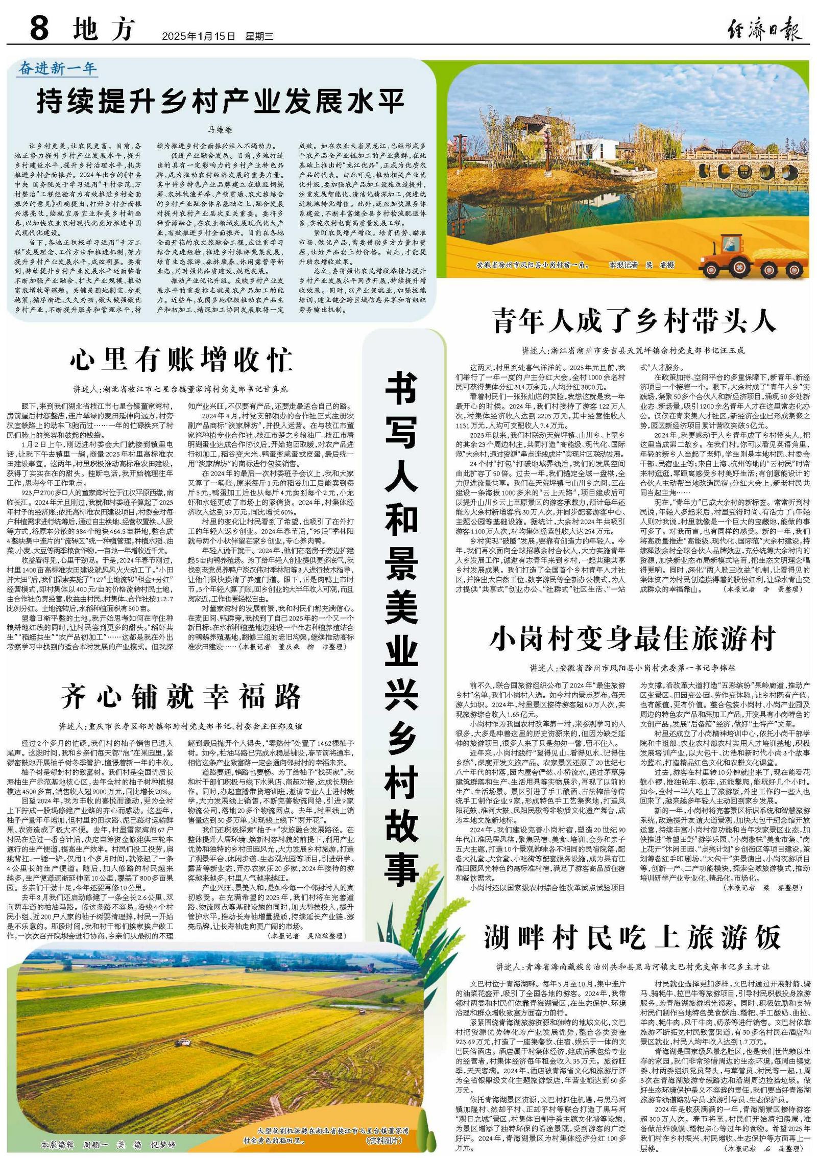 2024年是收获满满的一年,青海湖景区接待游客超300万人次。春节将至,村民们开始清扫房屋,准备做油炸馍馍、糌粑点心等过年的食物。希望2025年我们村在乡村振兴、村民增收、生态保护等方面再上一层楼。(本报记者 石 晶整理)