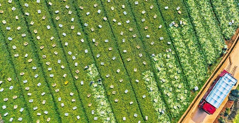 1月15日,云南省曲靖市陆良县芳华镇龙潭社区,菜农正在采收新鲜蔬菜,保障冬季市场供应。王 勇摄(中经视觉)