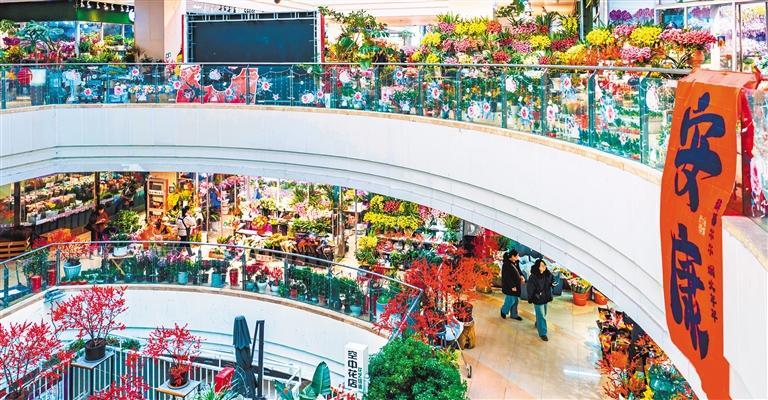 ▶1月6日,四川省乐山市市中区全福街道,市民在花卉市场选购鲜花。李华时摄