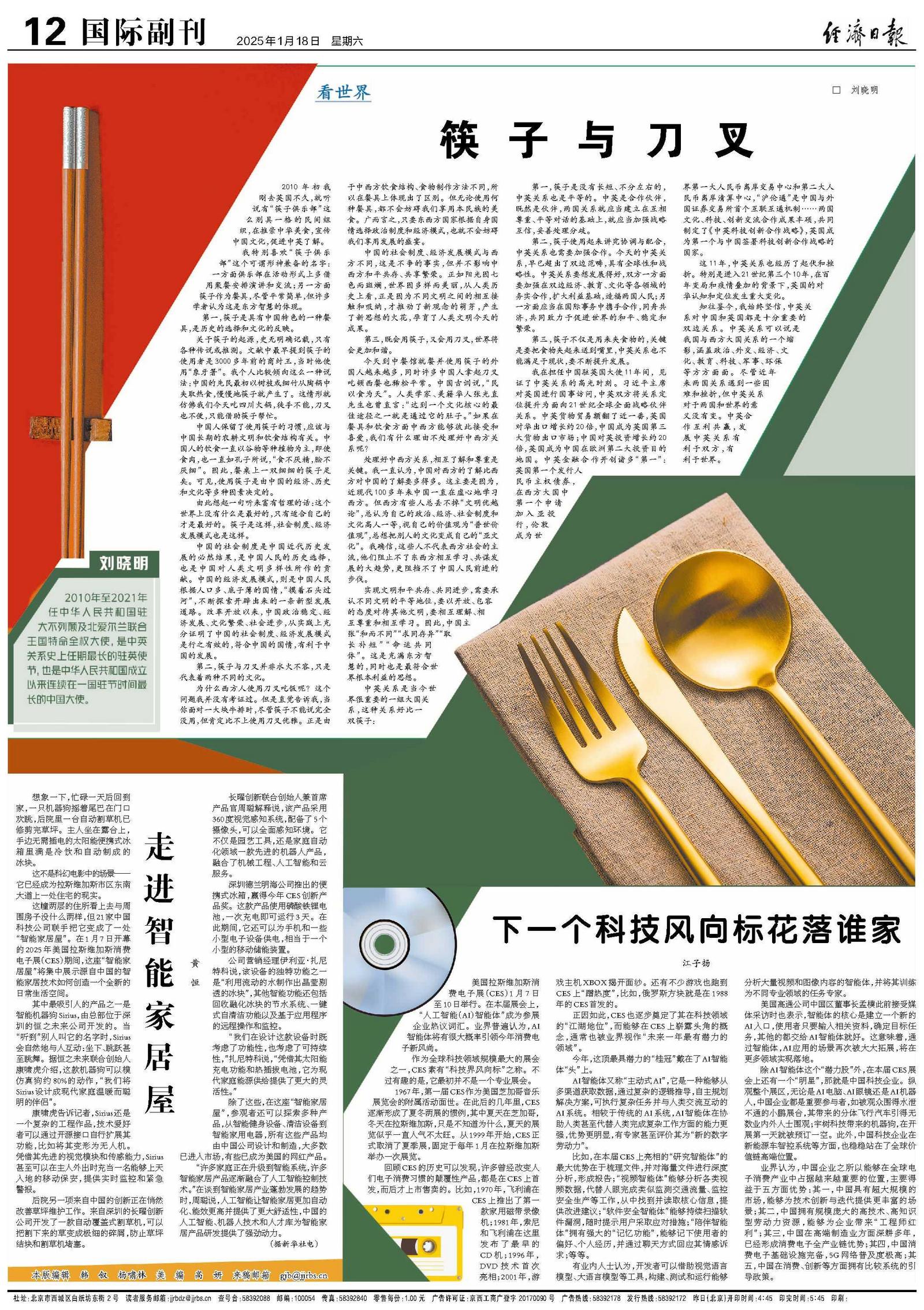 今天到中餐馆就餐并使用筷子的外国人越来越多,同时许多中国人拿起刀叉吃顿西餐也稀松平常。中国古训说,“民以食为天”。人类学家、美籍华人张光直先生也曾直言:“达到一个文化核心的最佳途径之一就是通过它的肚子。”如果在餐具和饮食方面中西方能够彼此接受和喜爱,我们有什么理由不处理好中西方关系呢?