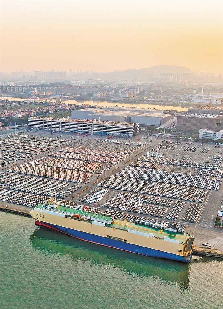 一月二十日,广东省广州市南沙汽车口岸滚装码头一派繁忙。近年来,该口岸积极打造服务粤港澳大湾区、辐射内陆地区、连通世界的汽车出海大通道,目前航线已覆盖东南亚、中北美等地区。吕华当摄(中经视觉)