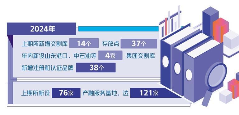 2024年,上期所新增交割库14个、存放点37个,年内新设山东港口、中石油等4家集团交割库,新增注册和认证品牌38个,加快了期货交割产品在全国范围内的贸易流通,有助于全国统一大市场建设。
