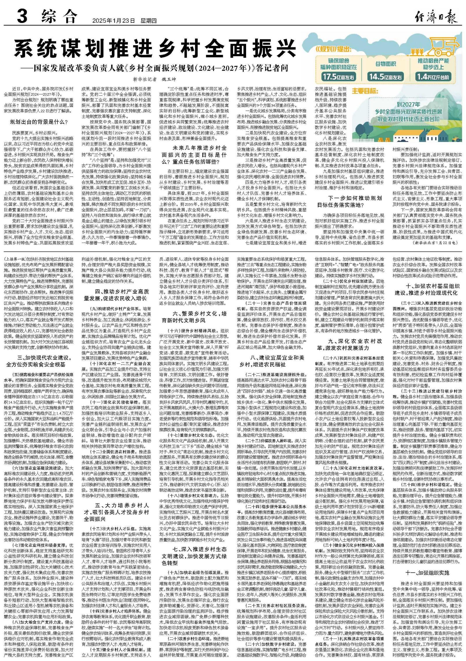 近日,中共中央、国务院印发《乡村全面振兴规划(2024—2027年)》。