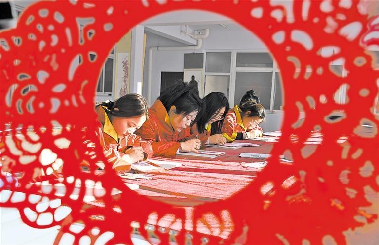 1月21日,山西省广灵县剪纸博物馆内员工们正在制作《金蛇迎春》剪纸作品。为迎接蛇年春节,该馆为游客准备了剪纸展览、手工制作体验、非遗剪纸文化讲解等多项活动,让游客更好地感受传统文化的魅力。霍飞飞摄(中经视觉)