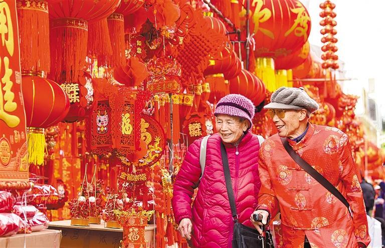 ▲2024年2月5日,四川省西昌市建昌古城,一对老夫妇在逛年货市场。