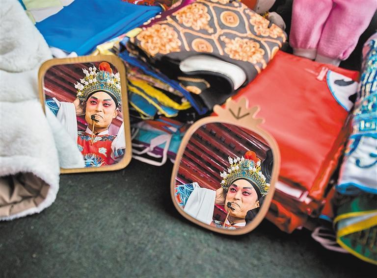 ▲2024年2月15日,湖南省浏阳市金刚镇何家大屋,湘剧演员正在化妆。