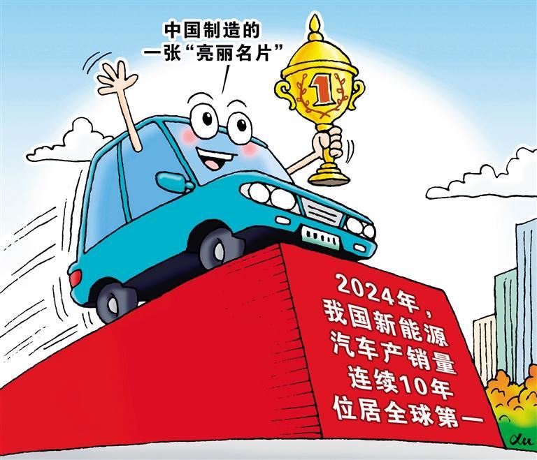 工业和信息化部近日公布数据显示,2024年,我国新能源汽车年产销量迈上千万辆级台阶,分别达到1288.8万辆和1286.6万辆,新能源汽车产销量连续10年位居全球第一。过去10年,我国新能源汽车年产销量从万辆级跨越到千万辆级,产品出口到70多个国家和地区,成为中国制造的一张亮丽名片。也要看到,新能源汽车产业面临国内竞争加剧、国际贸易壁垒高企等新形势新挑战。下一步,应从加强企业技术创新、加大市场推广力度、提升绿色发展水平、着力优化产业生态等多方面施策。加快突破新体系电池等关键核心技术,落实好汽车以旧换新、新能源汽车车购税减免等优惠政策,支持优势企业提质增效做优做强,不断优化产业生态,努力保持新能源汽车产业发展的良好势头。 (时 锋)