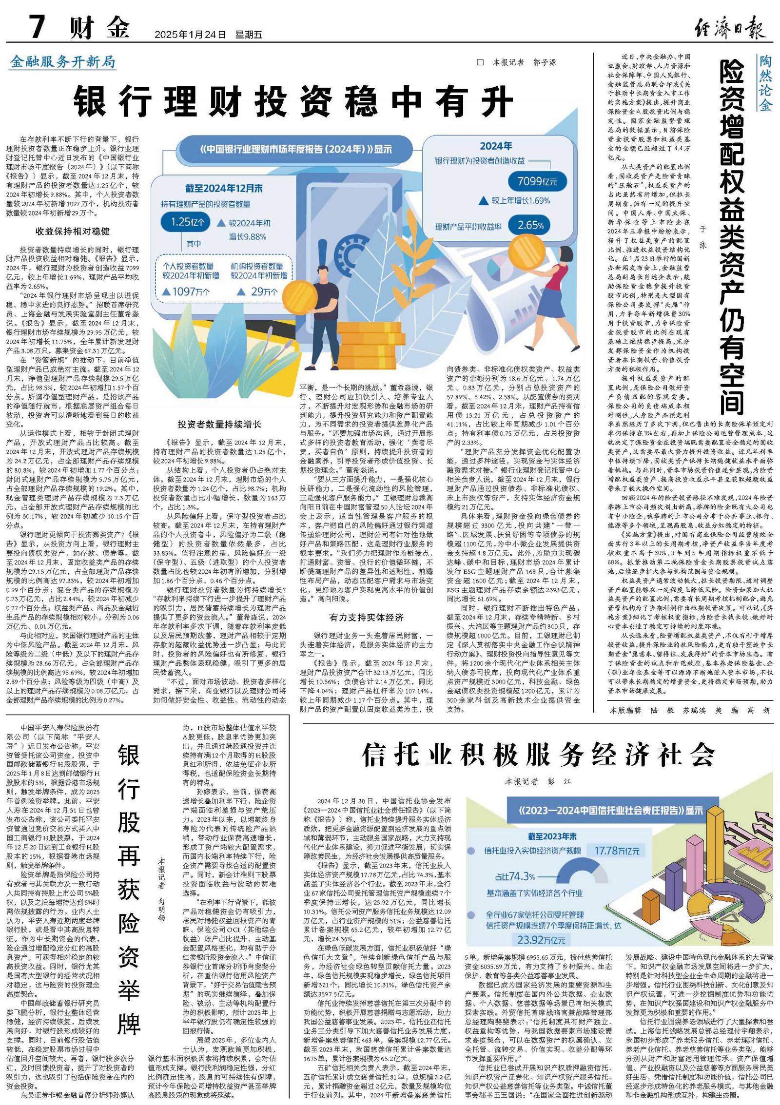 《报告》显示,截至2024年12月末,持有理财产品的投资者数量达1.25亿个,较2024年初增长9.88%。