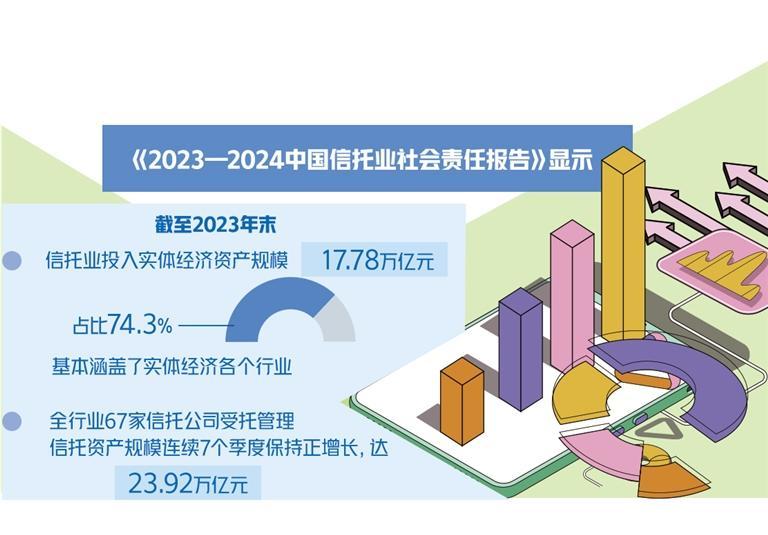 2024年12月30日,中国信托业协会发布《2023—2024中国信托业社会责任报告》(以下简称《报告》)称,信托业持续提升服务实体经济质效,把更多金融资源配置到经济发展的重点领域和薄弱环节,主动服务国家战略,大力支持现代化产业体系建设,努力促进平衡发展,切实保障改善民生,为经济社会发展提供高质量服务。