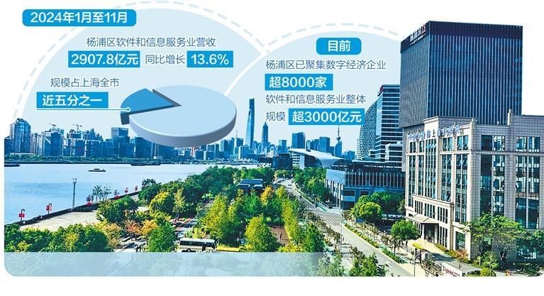 “杨浦曾是工业大区、工业老区,如今已初步实现发展动能的转变,数字经济开始发挥顶梁柱作用。”张天炜说,在杨浦,以软件和信息服务业为代表的数字经济连续5年保持两位数增长,数字经济正在成为杨浦经济增长的新引擎。2024年1月至11月,杨浦区软件和信息服务业营收2907.8亿元,同比增长13.6%,增速高于上海全市超过3个百分点,规模占上海全市近五分之一。