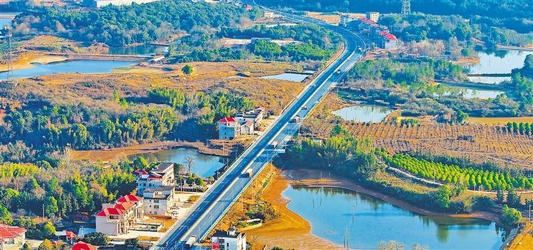 一月二十三日,江西省宜春市上高县锦江镇大塘村,通村公路车辆穿村而过。近年来,当地大力推进交通基础设施建设,推动农产品外运销售,助力乡村全面振兴。