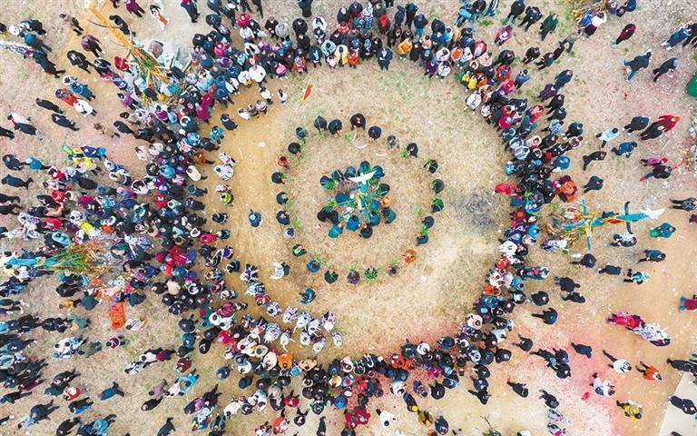 ◀2024年2月25日,广西柳州市融水苗族自治县香粉乡古龙坡举办一年一度的古龙坡会。