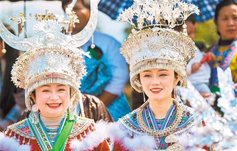 ▲2024年2月17日,贵州省从江县丙妹镇敖里苗寨举办芦笙节,苗族群众盛装打扮。