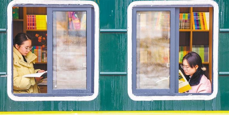 ▶2024年2月4日,市民在贵州省铜仁市玉屏侗族自治县城区火车书屋阅读书籍。