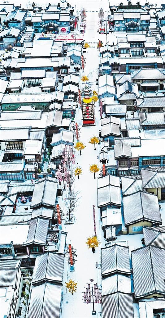 ▶2024年2月22日,在山东省临沂市郯城县郯国古城景区拍摄的雪景。
