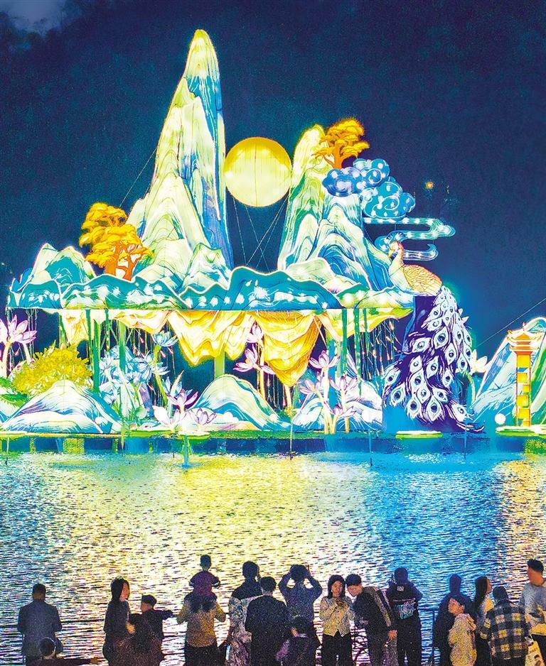 1月25日,游客在广西南宁市青秀山风景区观赏花灯。春节来临之际,南宁市举办“壮美广西·灯耀南宁”2025青秀山新春灯会等丰富多彩的活动,营造欢乐祥和的节日氛围。