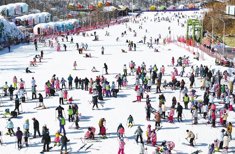 2月3日,湖北省襄阳市保康县横冲国际滑雪场内,游客在滑雪。春节假期期间,当地滑雪场吸引众多游客前来打卡,火热“冰雪游”成为当地新的增长点。