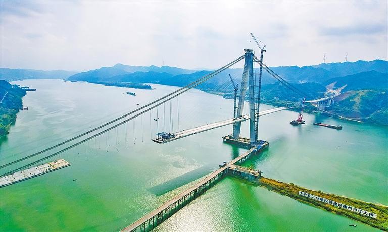 近日,在浔江广西梧州藤县濛江镇河段,浔江特大桥正加紧建设。作为平岑高速公路的控制性工程之一,大桥建成后,将成为打通桂东地区连接粤港澳大湾区的一条重要通道,对优化广西高速路网布局、加快地方经济发展具有重要意义。周火文摄(中经视觉)
