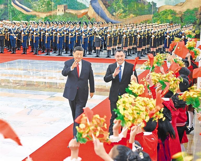 习近平指出,中国和吉尔吉斯斯坦山水相依、民心相亲,是好邻居、好朋友、好伙伴。近年来,中吉关系实现跨越式发展,达到新时代全面战略伙伴的新高度。双方政治互信持续巩固,各领域合作喜讯频传,构建中吉命运共同体的社会和民意基础日益牢固。中方支持吉方走符合本国国情的发展道路,愿同吉方深化发展战略对接,扩大治国理政经验交流,推进全方位互利合作,携手维护两国共同利益,推动中吉命运共同体建设更好落地走实。