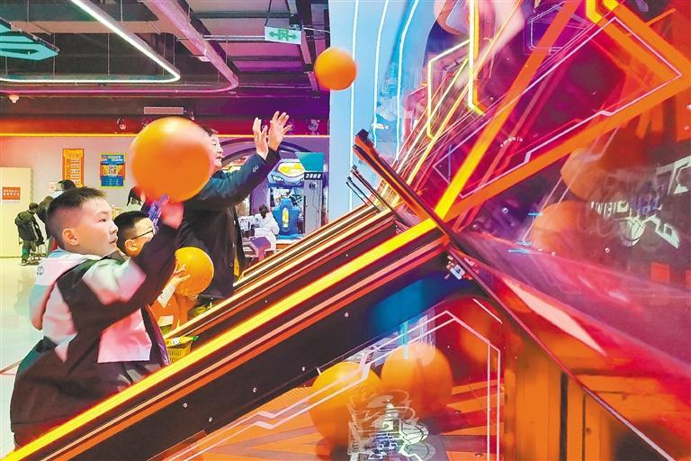 ◀1月29日,市民在湖北省孝感市云梦县电玩城玩极速投球游戏。