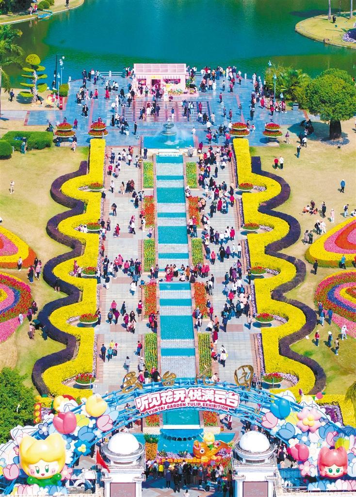 ▶2月4日,在广东省广州市白云山云台花园举办的郁金香主题花展,吸引游客前来观赏。