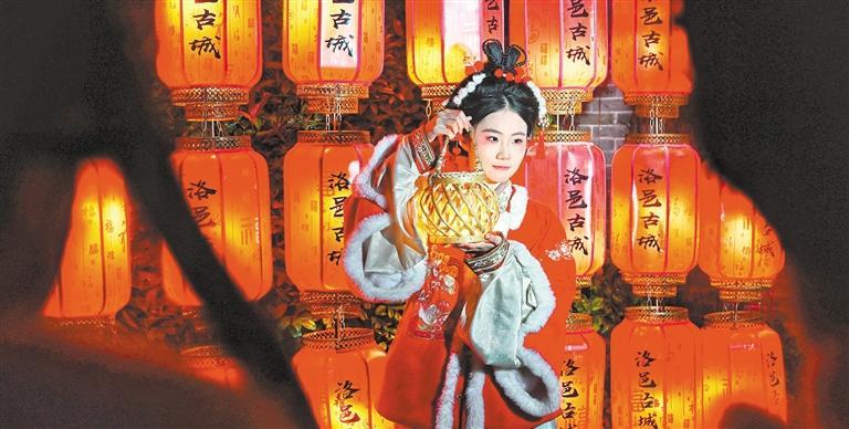 ◀1月30日,游客在河南省洛阳市洛邑古城体验旅拍。