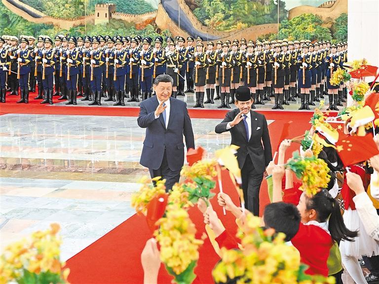 双方发表《中华人民共和国和文莱达鲁萨兰国关于深化战略合作伙伴关系、推进中文命运共同体建设的联合声明》。