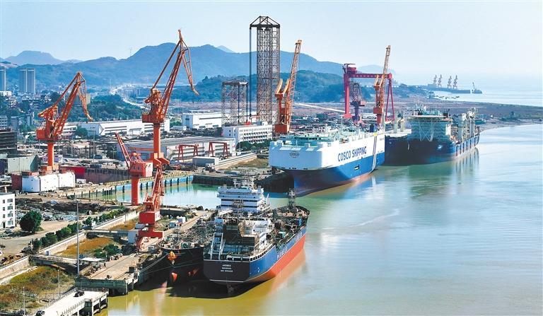 ▼2月5日,福建福州连江县一造船企业,多艘大型船舶在加紧建造。
