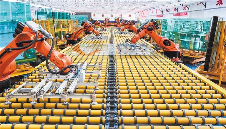 ▲2月6日,河北石家庄玉晶玻璃有限公司生产车间,机器人进行玻璃自动分类搬运作业。