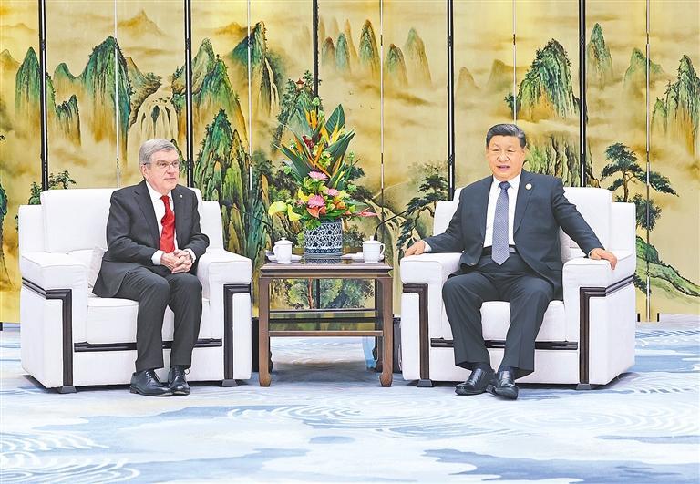 习近平指出,近年来,中国成功举办北京冬奥会、成都大运会、杭州亚运会,今晚将迎来哈尔滨亚冬会。这些重大体育赛事,都体现了中国同国际奥委会的密切合作。奥林匹克精神是人类文明的重要组成部分,与中国以中国式现代化全面推进强国建设、民族复兴伟业的目标和推动构建人类命运共同体的愿景高度契合。中国将奥林匹克精神同中华优秀传统文化相结合,大力发展体育事业,朝着建设体育强国、健康中国目标迈进,必将为国际体育事业不断作出新的贡献。我们愿同国际奥委会一道,继续推动奥林匹克运动蓬勃发展。