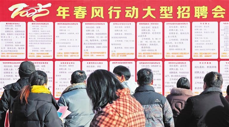 ▲2月6日,江苏省句容市“春风行动”招聘会现场,求职者在了解招聘信息。