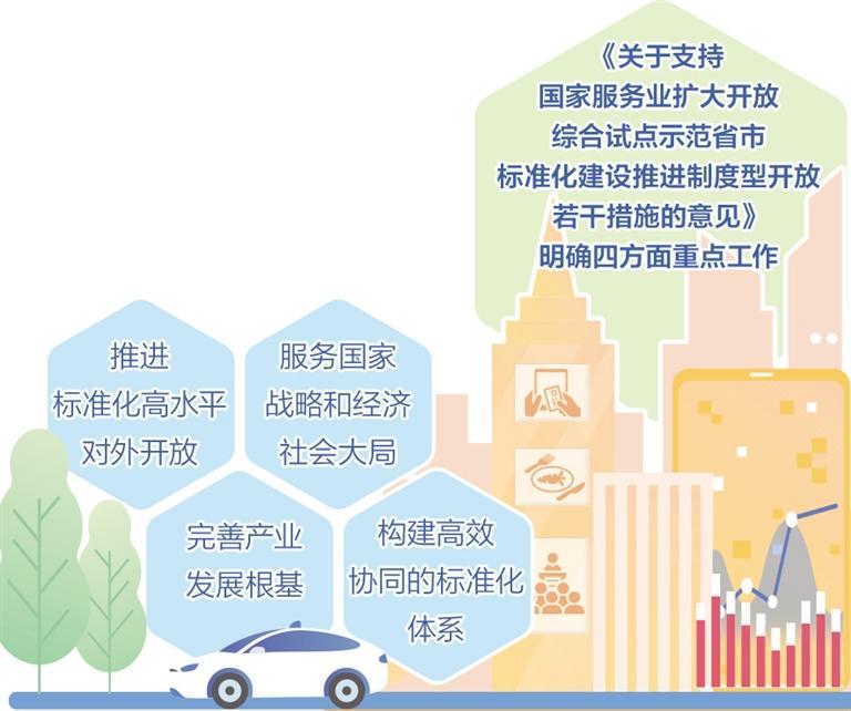 近日,商务部、市场监管总局联合印发《关于支持国家服务业扩大开放综合试点示范省市标准化建设推进制度型开放若干措施的意见》及《国家服务业扩大开放综合试点示范省市标准制修订及相关工作任务清单(首批)》,推动在国家服务业扩大开放综合试点示范省市开展标准化建设先行先试。