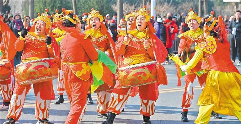 ▲2月10日,河北邯郸市峰峰矿区玉皇阁路的社火表演喜庆热闹。