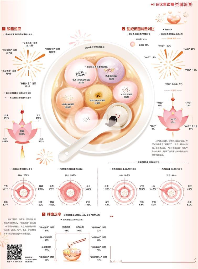 从甜咸口味的融合创新,到更加强调美好寓意,再到以多种玩法实现“出圈”,汤圆不仅满足了味蕾的需求,更成为情感与文化传承的载体。一碗热气腾腾的汤圆,馅料不同、口味各异,都承载着人们对家庭团圆、生活美满的祝愿。