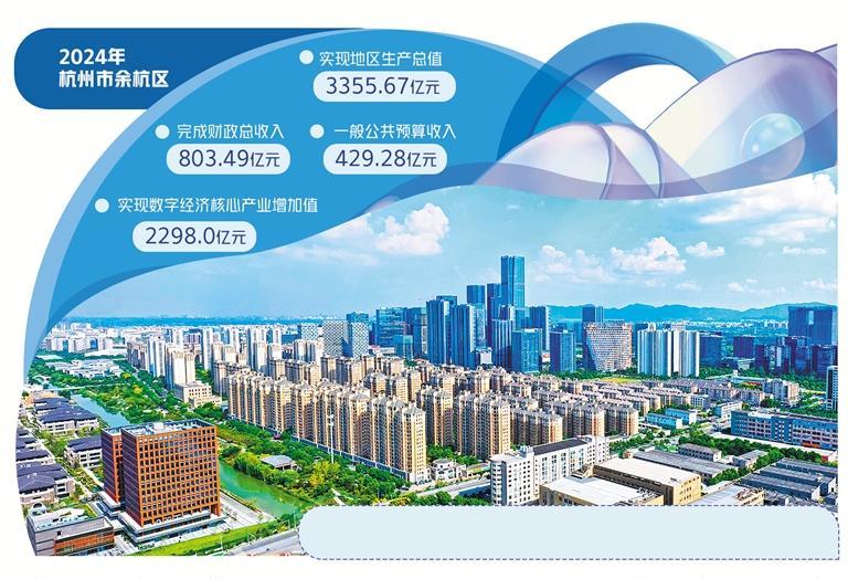 东西纵横的文一西路两侧,自旋芯片与技术全国重点实验室成为集成电路领域的创新“孵化器”;杭州超重力场实验大楼近期交付使用,未来这里将模拟“一眼万年”“一步千里”的时空压缩;之江实验室里,研究团队正致力于把算力应用于太空,实现卫星之间互联互通……2024年,杭州市余杭区以3355.67亿元的地区生产总值蝉联“浙江经济第一区”,完成财政总收入803.49亿元、一般公共预算收入429.28亿元,也是浙江省唯一财政收入超800亿元的区,经济社会发展交出了一份优异的答卷。