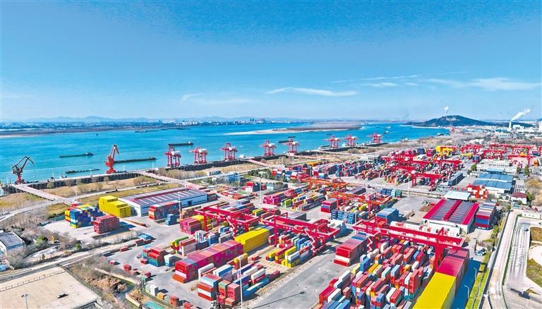 安徽芜湖港朱家桥港区国际集装箱码头,船舶有序靠泊,接驳车辆往来穿梭,一派繁忙景象。今年1月份,该港区集装箱吞吐量同比增长11.26%,实现首月“开门红”。