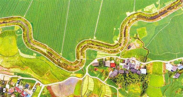 2月15日,重庆市垫江县沙坪镇李白村高标准农田,绿油油的制种油菜与错落有致的民房相互映衬。近年来,当地积极调整农业产业结构,致力打造万亩制种油菜和制种水稻基地,促进农业提质增效和农民增收。